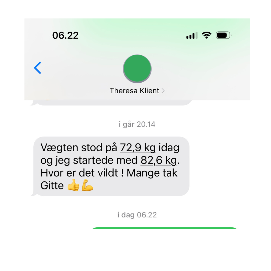 - tabt dig og enten være i mål med vægten eller godt på vej mod ønskevægten.